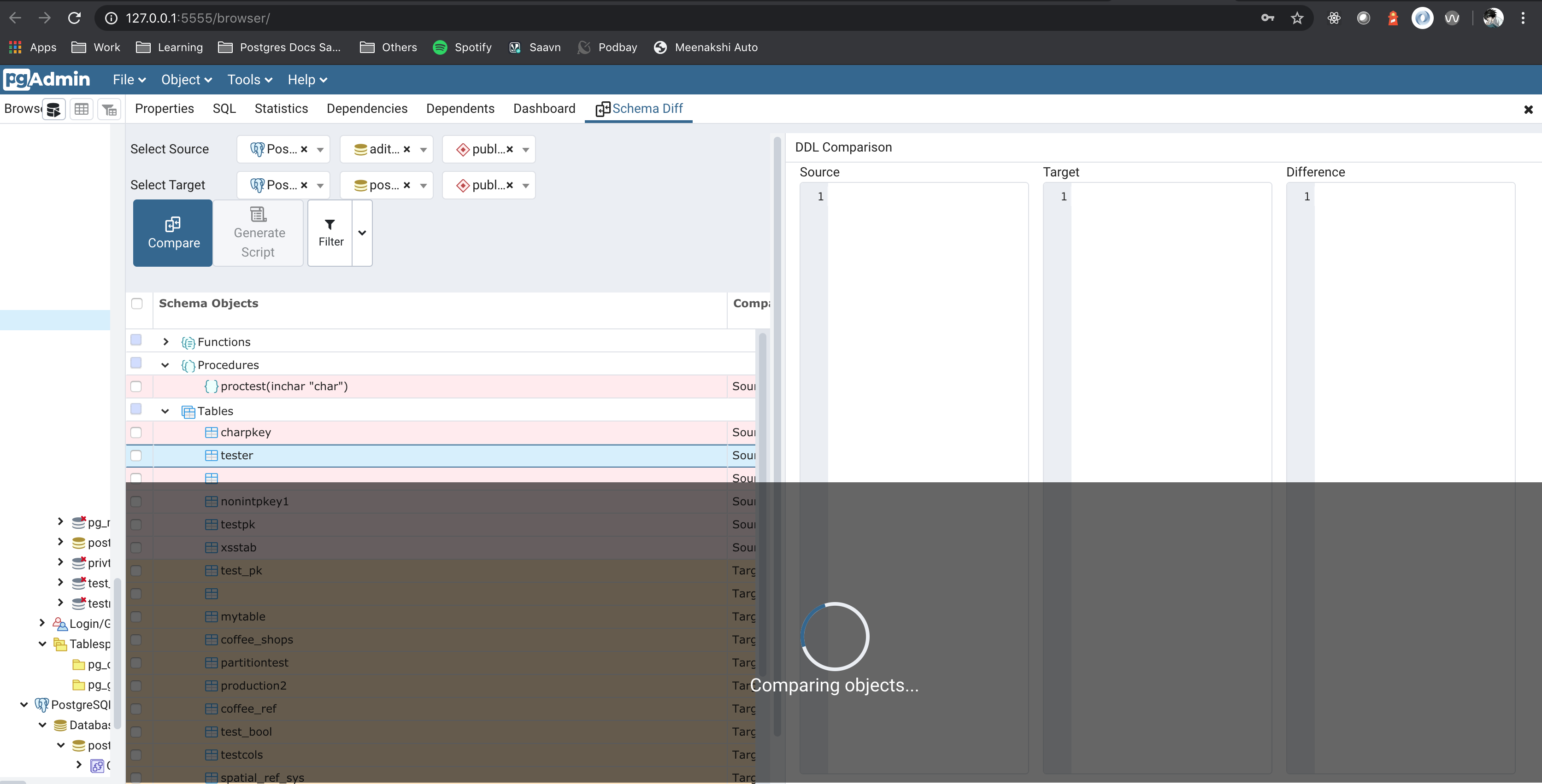 Обсуждение: [Feature-3452] Schema diff tool with Table, View, Materialized View,Functions and Procedures