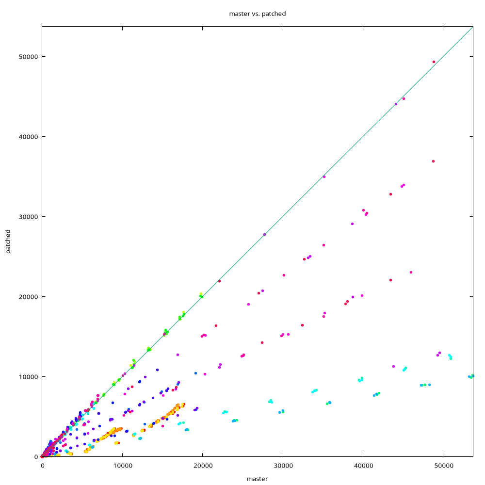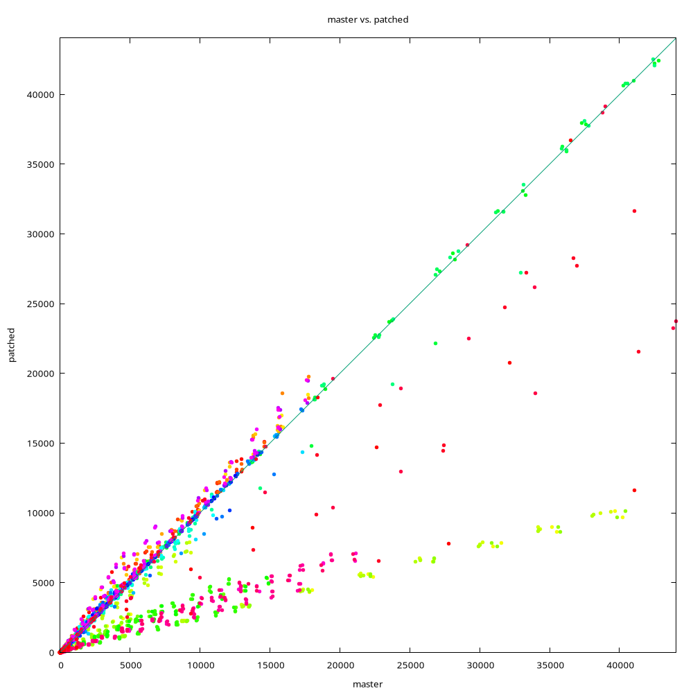 On Thu, Aug 14, 2025 at 12:56 PM Peter Geoghegan <pg@bowt.ie> wrote: > I performed the usual procedure of prewarming the index and evicting the heap > relation, and then actually running the relevant query through EXPLAIN > ANALYZE. Direct I/O was used throughout. > io_method=io_uring > ------------------ > > Original backwards scan: 1052.807 ms (shared read=187.876) > "No heap correlation" backwards scan: 649.473 ms (shared read=365.802) Attached is a differential flame graph that compares the execution of these 2 queries in terms of the default perf event (which is "cycles", per the generic recipe for making one of these put out by Brendan Gregg). The actual query runtime for each query was very similar to what I report here -- the backwards scan is a little under twice as fast. The only interesting thing about the flame graph is just how little difference there seems to be (at least for this particular perf event type). The only thing that stands out even a little bit is the 8.33% extra time spent in pg_checksum_page for the "No heap correlation"/random query. But that's entirely to be expected: we're reading 49933 pages with the sequential backwards scan query, whereas the random one must read 77813 pages. -- Peter Geoghegan