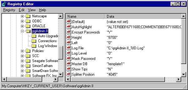 Sorry, I thought you said there was no pgAdmin II key? Where did all the other values come from?