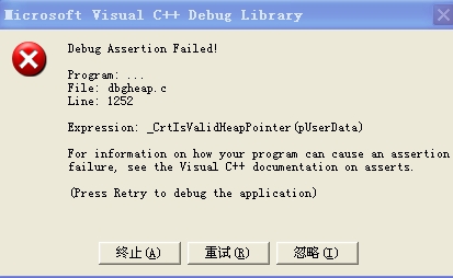 vcregress.bat check triggered Heap error in the Debug version of win32 build