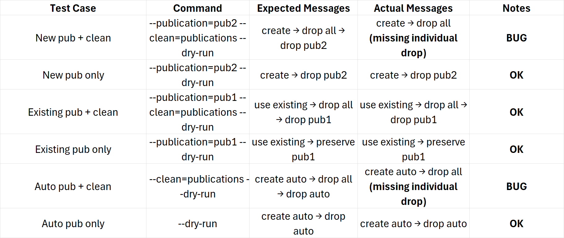 On Fri, Sep 26, 2025 at 6:06 AM Peter Smith <smithpb2250@gmail.com> wrote: > > On Thu, Sep 25, 2025 at 6:36 PM Chao Li <li.evan.chao@gmail.com> wrote: > > > > > > > > On Sep 25, 2025, at 16:18, Shubham Khanna <khannashubham1197@gmail.com> wrote: > > > > > > > > made_publication will always be set regardless of dry_run. > > > > > > You’re right — I made a mistake in my earlier explanation. > > made_publication is always set in create_publication(), regardless of > > dry-run. I have double-checked the dry-run output across the cases, > > and from what I can see the messages are being logged correctly. > > > > If you think there’s a specific combination where the dry-run logging > > isn’t behaving as expected, could you point me to it? From my testing > > it looks fine, but I want to be sure I’m not missing a corner case. > > > > > > I think, here you code has a logic difference from the old code: > > > > * With the old code, even if drop_all_pubs, as long as dry_run, it will still run drop_publication(). > > * With your code, if drop_all_pubs, then never run drop_publication(), because you moved the logic into “else”. > > > > To be honest, I am not 100% sure which is correct, I am just pointing out the difference. > > > > Hi Shubham. > > Chao is correct - that logic has changed slightly now. That stems from > my suggestion a couple of versions back to rewrite this as an if/else. > At that time, I thought there was a risk of a > double-drop/double-logging happening for the scenario of > 'drop_all_pubs' in a 'dry_run'. In hindsight, it looks like that was > not possible because the 'drop_all_pubs' code can only drop > publications that it *finds*, but for 'dry_run', it's not going to > find the newly "made" publications because although > create_publication() was called, they were not actually created. I did > not recognise that was the intended meaning of the original code > comment. > > ~~ > > Even if the patch reverts to the original condition, there still seem > to be some quirks to be worked out: > > * The original explanatory comment could have been better: > BEFORE > In dry-run mode, we don't create publications, but we still try to > drop those to provide necessary information to the user. > AFTER > In dry-run mode, create_publication() and drop_publication() do not > actually create or drop anything -- they only do logging. So, we still > need to call drop_publication() to log information to the user. > > * I'm not sure if that "preserve existing" logging should be there or > not? What exactly is it for? If you reinstate the original > "(!drop_all_pubs || dry_run)" condition, then it seems possible to log > "preserve existing" also for 'drop_all_pubs', but that is contrary to > the docs. Is this just a leftover from a few versions back, when > 'drop_all_pubs' would not drop everything? > > * It is a bit concerning that although this function appears slightly > broken (e.g. causing wrong logging), the tests cannot detect it. > > ~~ > > The bottom line is, I think you'll need to make a matrix of every > possible combination of made=Y/N; drop_all_pub=Y/N; dry_run=Y/N; etc > and then decide exactly what logging you want for each. I don't know > if it is possible to automate such testing -- it might be overkill -- > but at least the expected logging can be posted in this thread, so the > code can be reviewed properly. > Hi Peter, Chao, Thanks for the detailed observations. I went back and prepared a logging matrix for the different combinations of made_publication, drop_all_pubs, and dry_run. This highlights where the behavior diverges from the old code. Summary of findings: - When --clean=publications is used together with --dry-run, the code correctly logs "dropping all existing publications", but it fails to log the individual drop_publication() messages (e.g., "dropping publication pubX"). - This affects both user-created (--publication=...) and auto-created publications. - Most other cases (new pub only, existing pub only, auto pub only) behave as expected. - New bug discovered: In the existing pub + clean case, the logs show both "dropping publication pub1" and "preserve existing publication pub1". This is contradictory and comes from the original code path falling through to the “preserve” branch even when drop_all_pubs=true. The restructuring into if/else caused the missing individual drop_publication() logs in dry-run mode when drop_all_pubs=true. The original condition also had a flaw: in the existing pub + clean case, it could log both drop and preserve for the same publication. I have updated the conditions so that: - drop_publication() is always invoked in dry-run for correct logging. - The “preserve existing” log is suppressed when drop_all_pubs=true, eliminating the contradictory messages. The attached patch contains the changes, and the attached image shows the complete logging matrix for reference. Thanks and regards, Shubham Khanna.