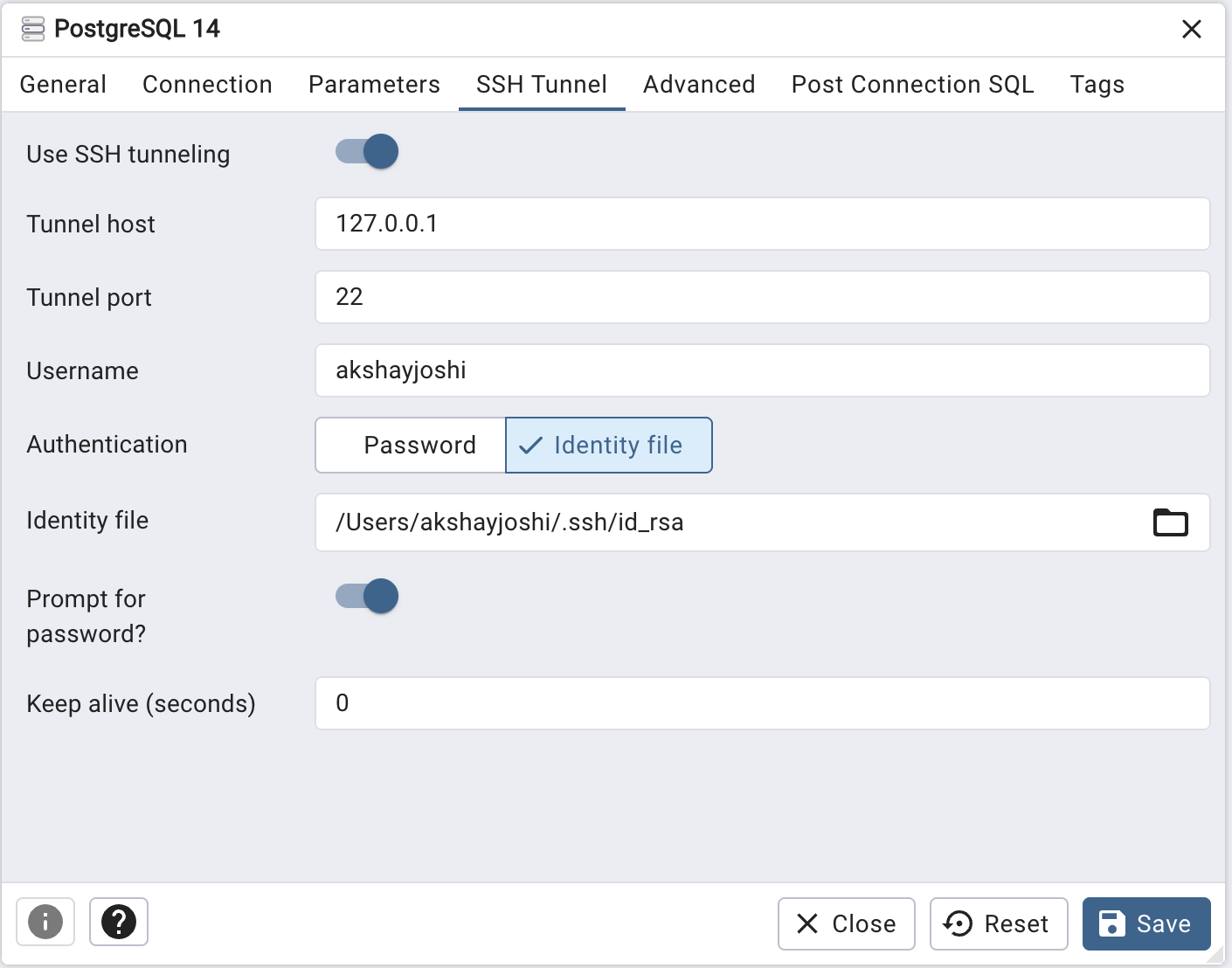 Add a new switch "Prompt for password?" in the server dialog under the SSHTunnel tab. By default, the switch is set to false and is enabled only when the authentication method is Identity File. See the screenshot below for reference.Thoughts/suggestions?