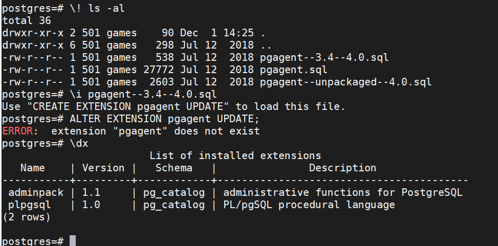 -rw-r--r-- 1 root root 538 Jul 12 2018 pgagent--3.4--4.0.sql