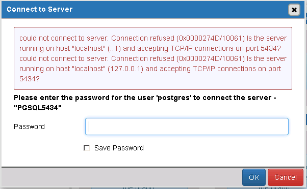 On 11/07/2016 07:27 PM, kaustubh kelkar wrote: > > Hi ,____ > > I am a PostgreSQL user who wants to create multiple instances of > PostgreSQL database server. I am using PostgreSQL 9.4 and above. ____ > > I tried to create more than 2 instances on Linux environment in which I > was successful. But, for windows environment, I tried with the help of > pgAdmin4 and with the help of commands (initdb and some more commands.) > In both cases , there is some issue related to the ports. Please find > the attached screenshot for the reference. To run more then one instance of Postgres on one machine each needs its own port. Have you done that? The screenshot indicates a different problem, namely pgAdmin(?) cannot find a running server on port 5434 on the localhost. There can be several reasons for this: 1) The server is not running, eg the start up script failed. Solution: Verify the server has actually started 2) The server is not running on localhost. Solution: Verify where it is hosted. 3) It is running on localhost but not on port 5434. Solution: Verify that the port variable in postgresql.conf for that instance is set to 5434 and that the server was restarted to see the change. 3) It is running and is using port 5434, but a firewall rule is blocking access. Solution: Check whether you have a firewall running and whether it is blocking port 5434. > > __ __ > > Please help me to resolve the issue. > ____ > > __ __ > > > > > -- Adrian Klaver adrian.klaver@aklaver.com