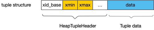 tuple's xmin and xmax are offsets from.