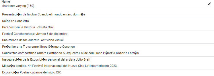 On 12/12/23 12:44, Igniris Valdivia Baez wrote: > this is the result I got, now I have to figure it out how to solve it, > thank you so much In what client are you viewing the data? -- Adrian Klaver adrian.klaver@aklaver.com