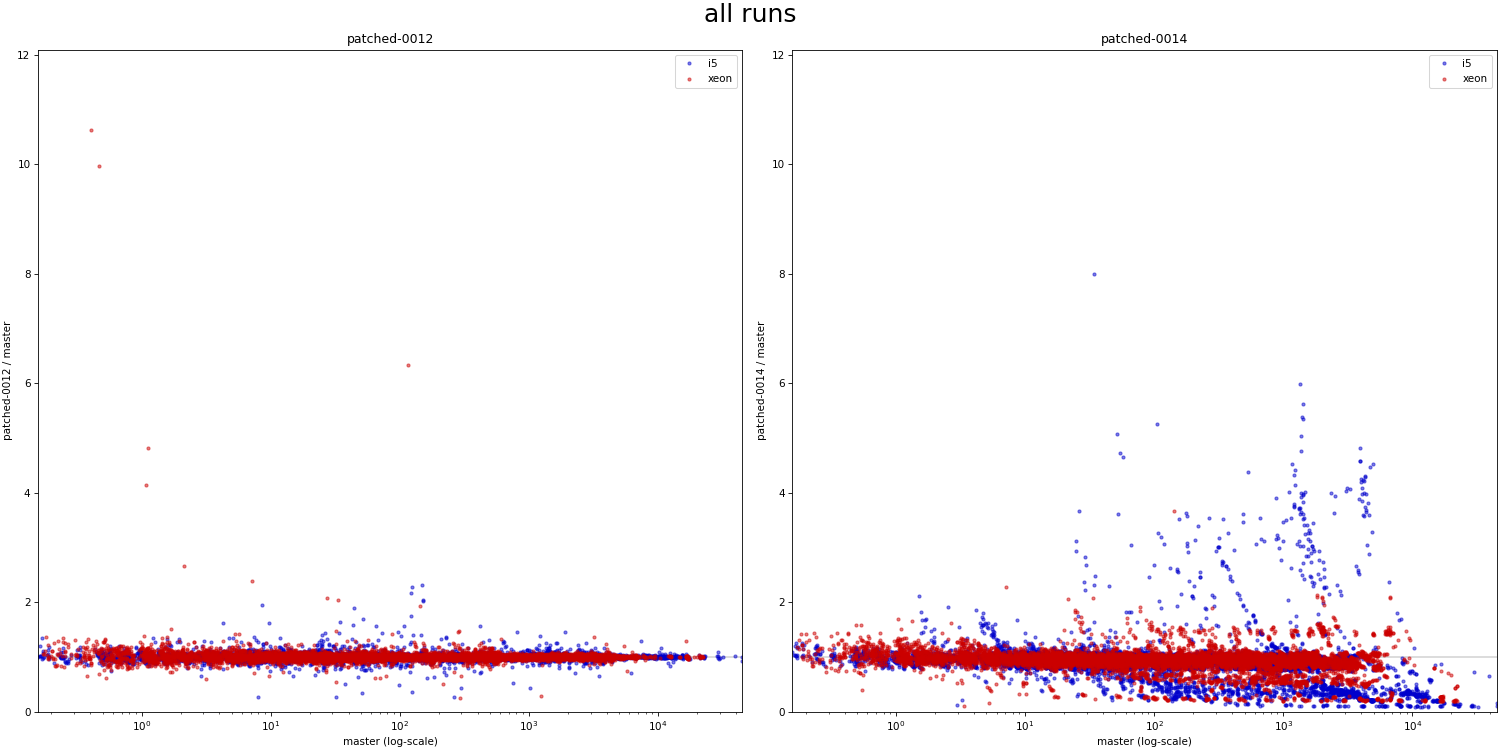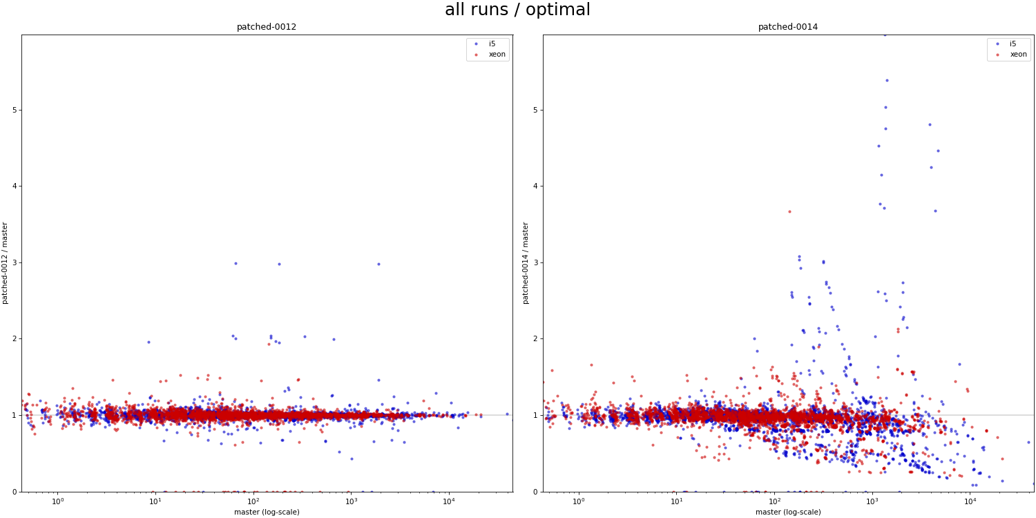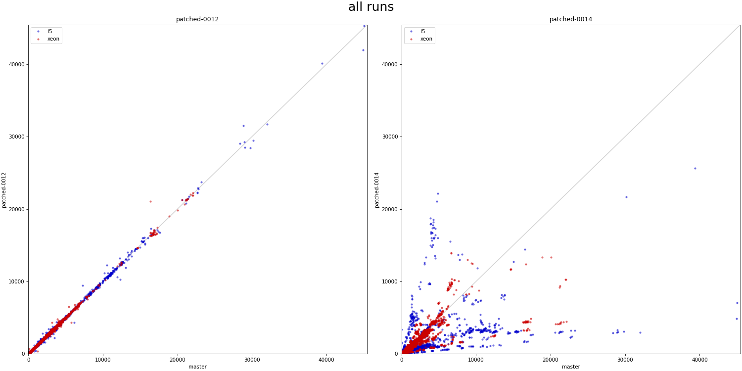 On 2/28/24 15:56, Tomas Vondra wrote: >> ... > > Sure, I can do that. It'll take a couple hours to get the results, I'll > share them when I have them. > Here are the results with only patches 0001 - 0012 applied (i.e. without the patch introducing the streaming read API, and the patch switching the bitmap heap scan to use it). The changes in performance don't disappear entirely, but the scale is certainly much smaller - both in the complete results for all runs, and for the "optimal" runs that would actually pick bitmapscan. FWIW I'm not implying the patch must 100% maintain the current behavior, or anything like that. At this point I'm more motivated to understand if this change in behavior is expected and/or what this means for users. regards -- Tomas Vondra EnterpriseDB: http://www.enterprisedb.com The Enterprise PostgreSQL Company
