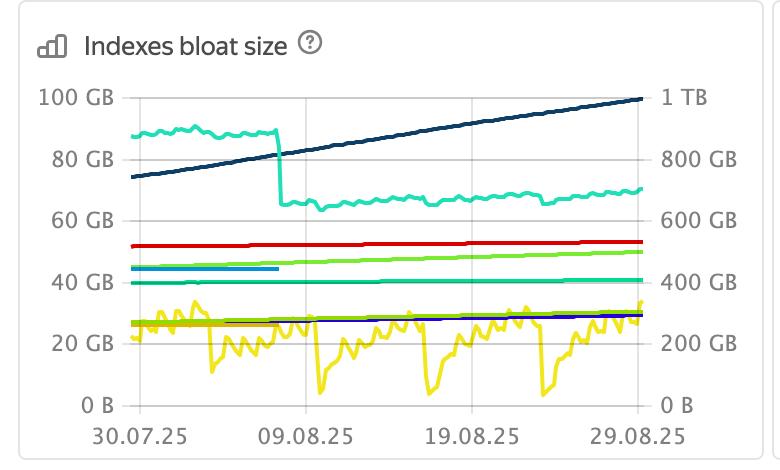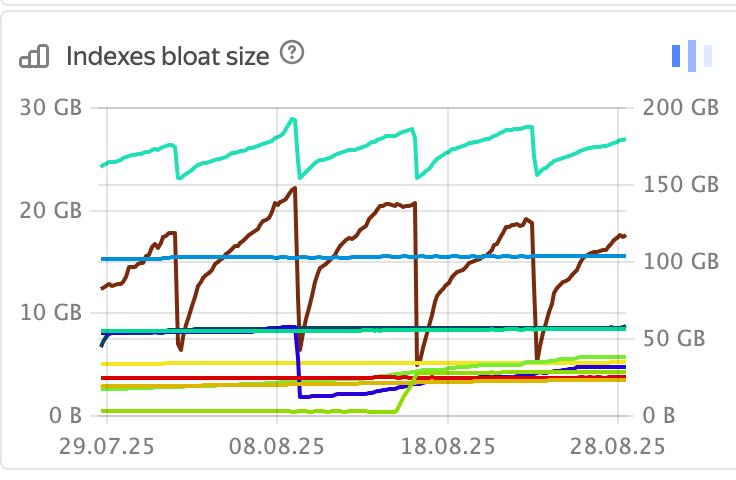 Peter, Matthias, many thanks for your input! > On 28 Aug 2025, at 01:06, Peter Geoghegan <pg@bowt.ie> wrote: > > Have you benchmarked it? Kind of. Here are bloat charts from random production clusters: Upper green line has an axis on right - it's total index bloat per cluster. Other lines are individual indexes with mostbloat, axis on the left. Notice the 7 day period on one of lines. It's our friday automatic index repack of an indexes that suffers from bloat. Mostof the week these indexes are 97%+ percents bloated. On a yellow line small period is noticeable - that's what "free at empty" vacuum can help with now. It is just one index, and even not a top bloat contributor. But 2 out of 3 random clusters had such index. (I must admitthat clusters were not truly random - I just picked browser tabs from recent incidents during my on-call duty shift) Both cases are queues with secondary index, which gets bloated quickly after reindexing. Of course, I'm not proposing to do "merge-at-half", merge-at-95%-free would be good enough for this case. 95% bloated indexcertainly has some 95% free pages. I think to establish baseline for locking correctness we are going to start from writing index scan tests, that fail withproposed merge patch and pass on current HEAD. I want to observe that forward scan is showing duplicates and backwardscan misses tuples. From that we will try to design locking that does not affect performance significantly, but allows to merge pages. Perhaps,we can design a way to switch new index scans to "safe mode" during index vacuum and waiting for existing scans tocomplete. Best regards, Andrey Borodin.